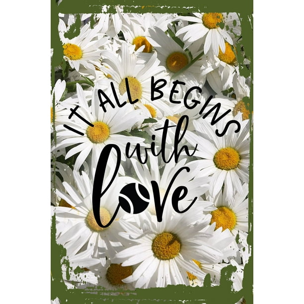 Daisy Flower Wall Art It All Begins With Love Tennis Ball Funny Sports Racquet Sports Tin Wall Sign 8 X 12 Decor Funny Gift Walmart Com